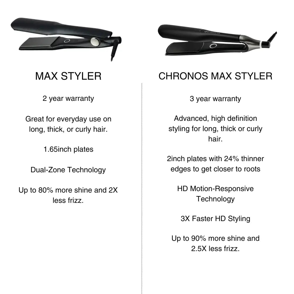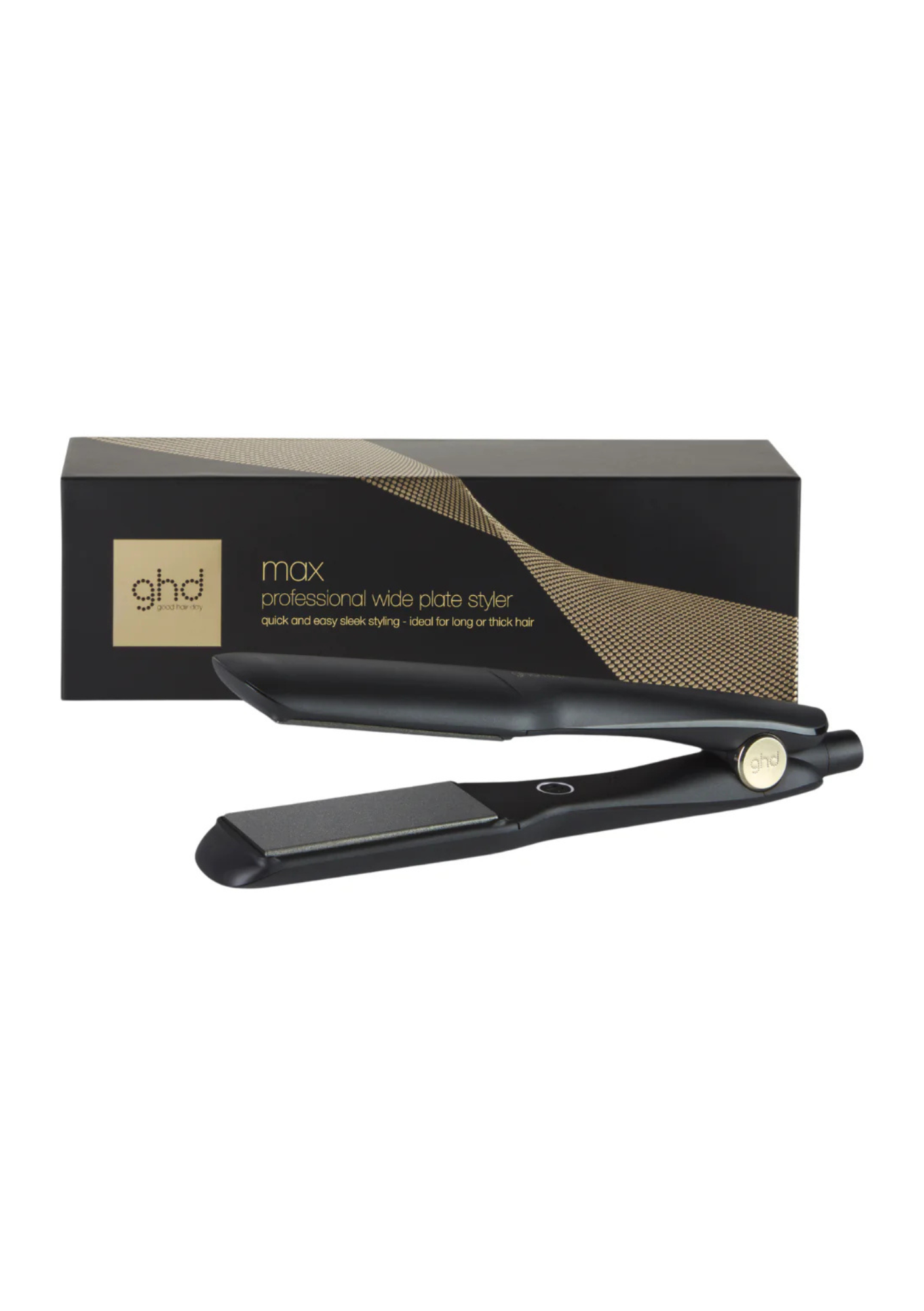 Harnessing two new generation heat sensors for consistent heat distribution, the ghd max hair straightener is ideal for styling long, thick or curly hair types in half the time. Evenly maintaining the optimum styling temperature of 185°C from root to tip for premium results without compromising the condition of your hair, the ghd Max Wide Plate Hair Straightener delivers professional performance for quick, easy styling with flawless results.